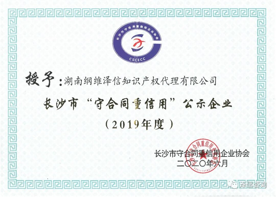 2020年9月1日,经湖南省咨询业协会审核批准,湖南纲维泽信知识产权代理有限公司取得湖南省咨询业乙级资信证书。